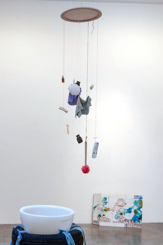 Photos from loved ones, wood, string, found objects, resin, ceramics, foam, soap