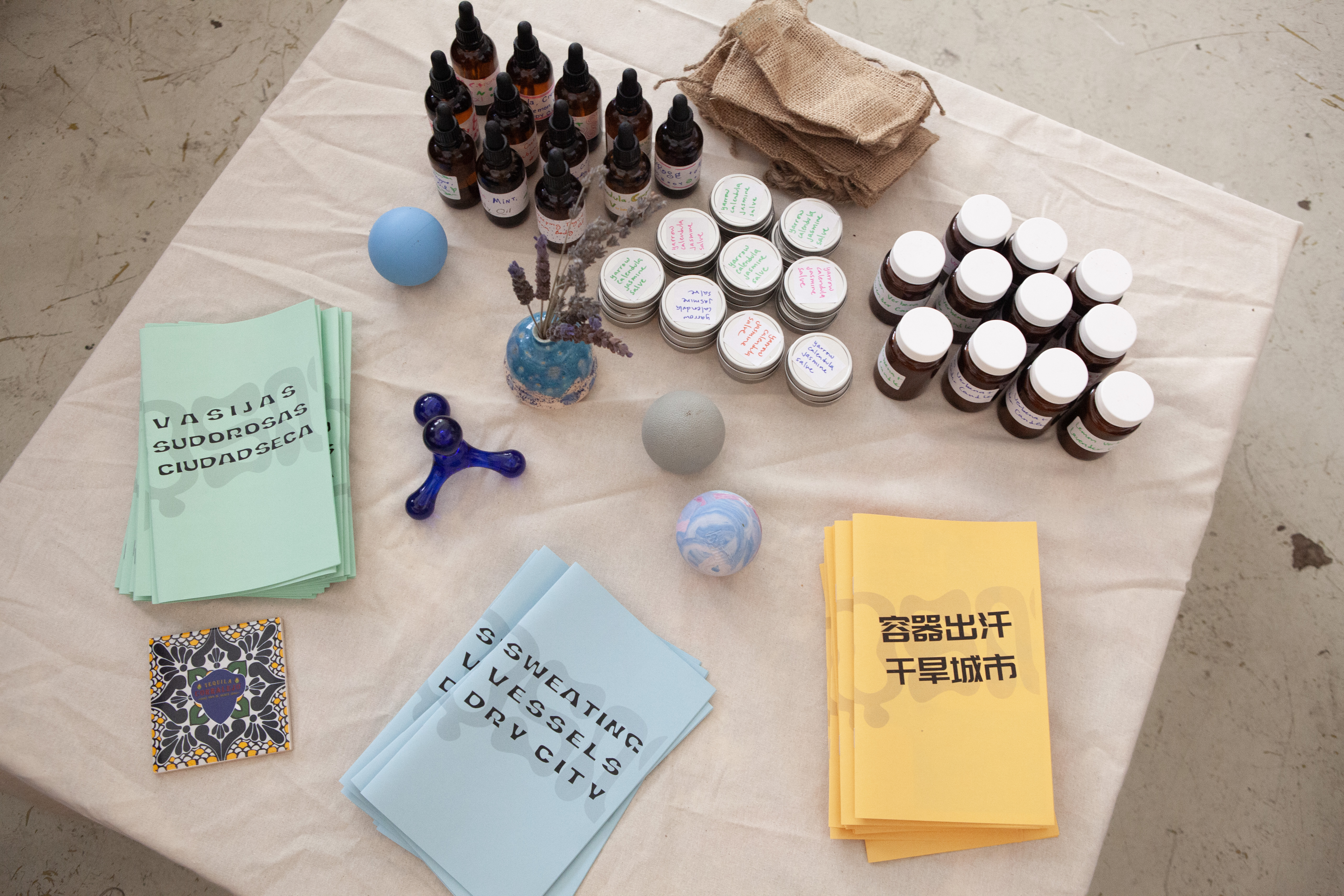 A pop-up exhibition at Coaxial Arts consisting of an installation, zines, and a body-oil making activity.